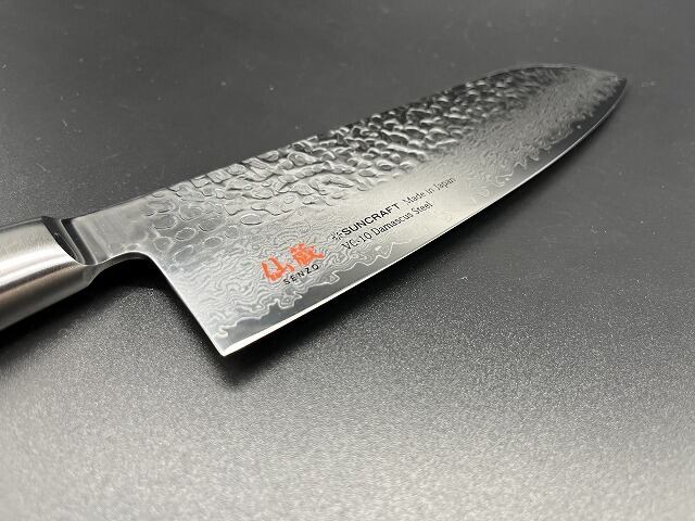 三徳 仙蔵 鎚目 クラシック黒合板柄 167㎜(Santoku Knife Senzō, Hammered Finish, Classic Black Composite Handle, 167mm)